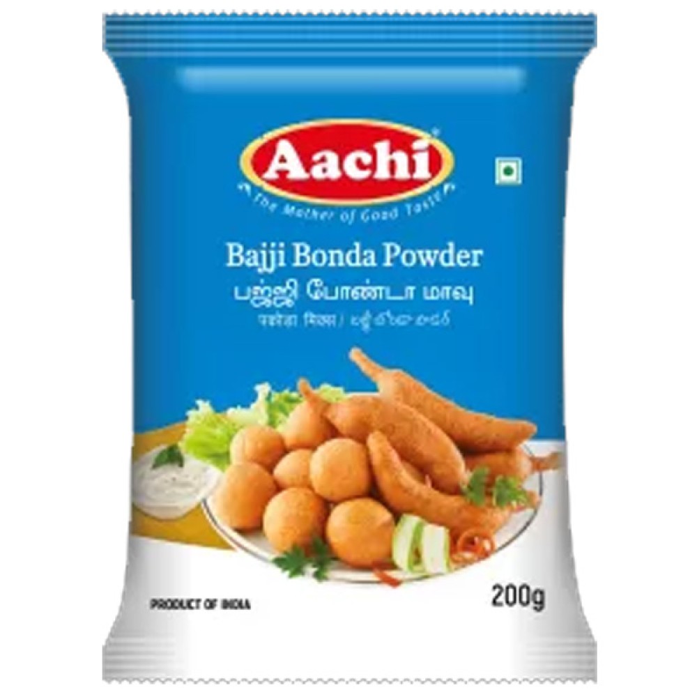 AACHI BAJJI BONDA POWDER, can be served as an evening snack for your people at home. It is tasty and can be prepared quickly. It contains Gram flour, Rice flour, Chilli Powder, Salt, Sodium Bi-carbonate and compounded Asafoetida.