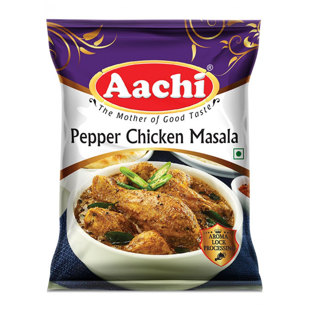 Take 50g of Aachi Pepper Chicken Masala for 750g of chicken pieces. Add fried chopped onion and tomato to this. Add required amount of water and pressure cook for 5 whistles. Now spicy Aachi pepper chicken is ready to serve hot.