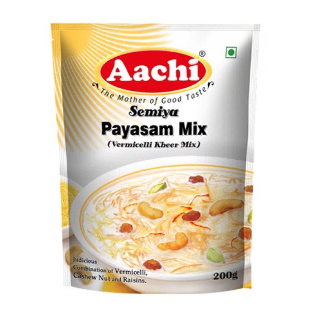 On special occasion at home, payasams are prepared , which takes lot of your precious time. But now, with Aachi semiya payasam mix, you only need to have milk at home. You can have instant payasam in 5 minutes! Aachi Semiya Payasam Mix contains Sugar, Vermicelli, Skimmed Milk Powder, Cashew nuts, Raisins and Cardamom