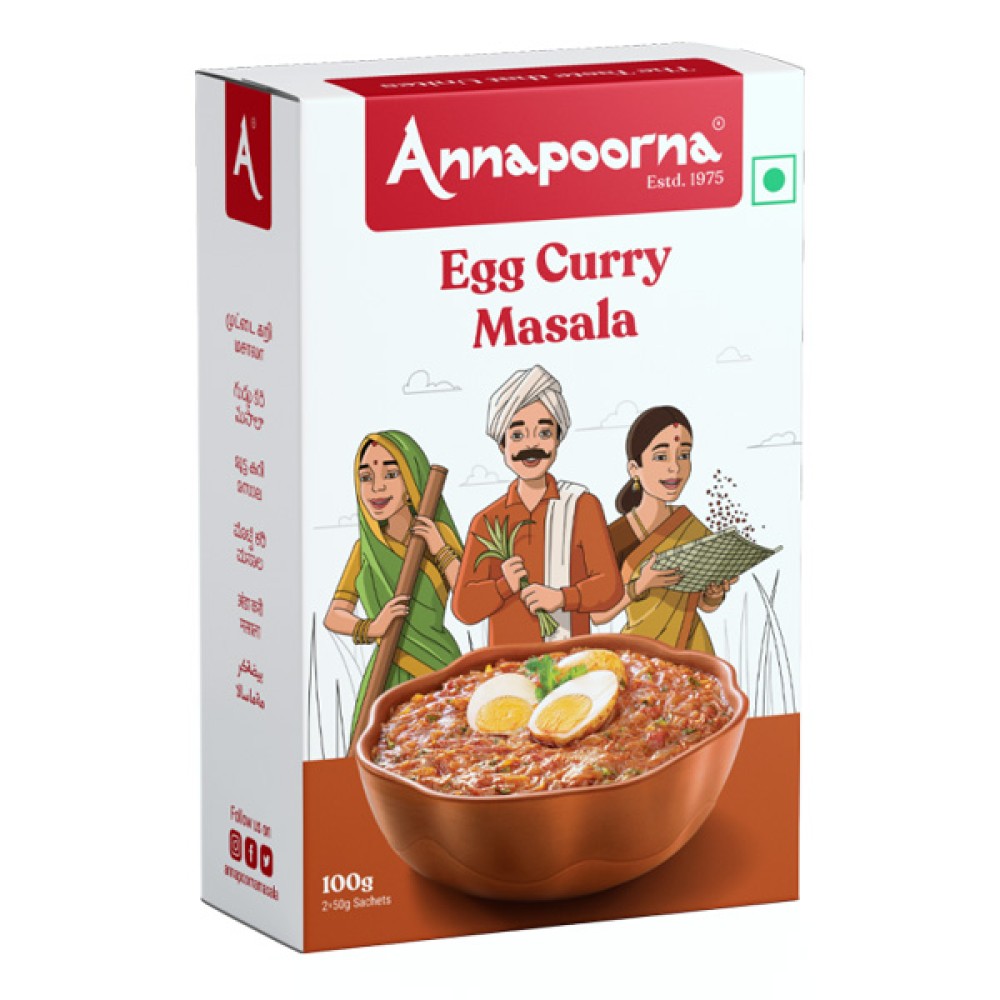 Savour the tastes of homely comfort with Annapoorna’s Egg Curry masala. Our blend comprises of whole spices and herbs that have been roasted and ground to bring the flavours that you treasure right to your plate.