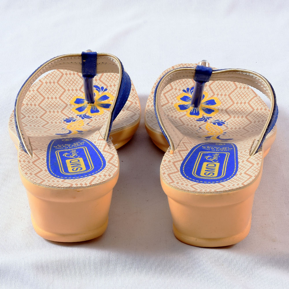 Make an impression wherever you go with the modern blue canvas and yellow flower printed Sandals, from SMD Footwear. This designer sandals goes well with silk sarees, churidars, leggings and traditional wears. A valuable addition to your footwear collection and beautifully fit for every occasion and wear with high confidence. Now available online and sale in Coimbatore. Buy now!