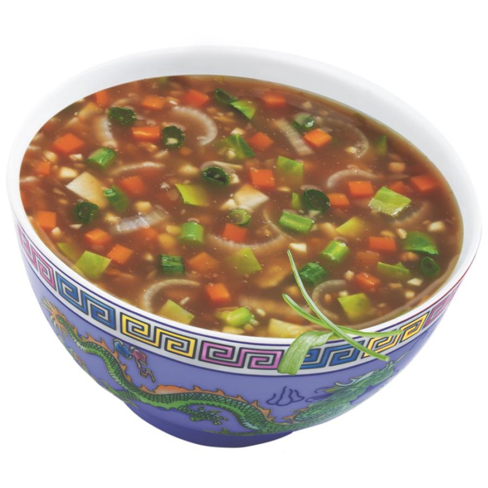 Potato Starch, Dried Glucose Syrup, Salt, Sugar, Dehydrated Vegetables 8% (Carrot, Cabbage), Soy Sauce Powder (Soybean, Wheat, Salt), Dehydrated Onion, Garlic, Spices 1.9% (Chilli Powder, Pepper Powder), Flavour Enhancer (E635), Natural Colour (E150D), Sunflower Oil, Anticaking Agent (E551), Acidity Regulator (E296), Thickener (E415). Contains Permitted Natural Colour (Caramel, E150D).