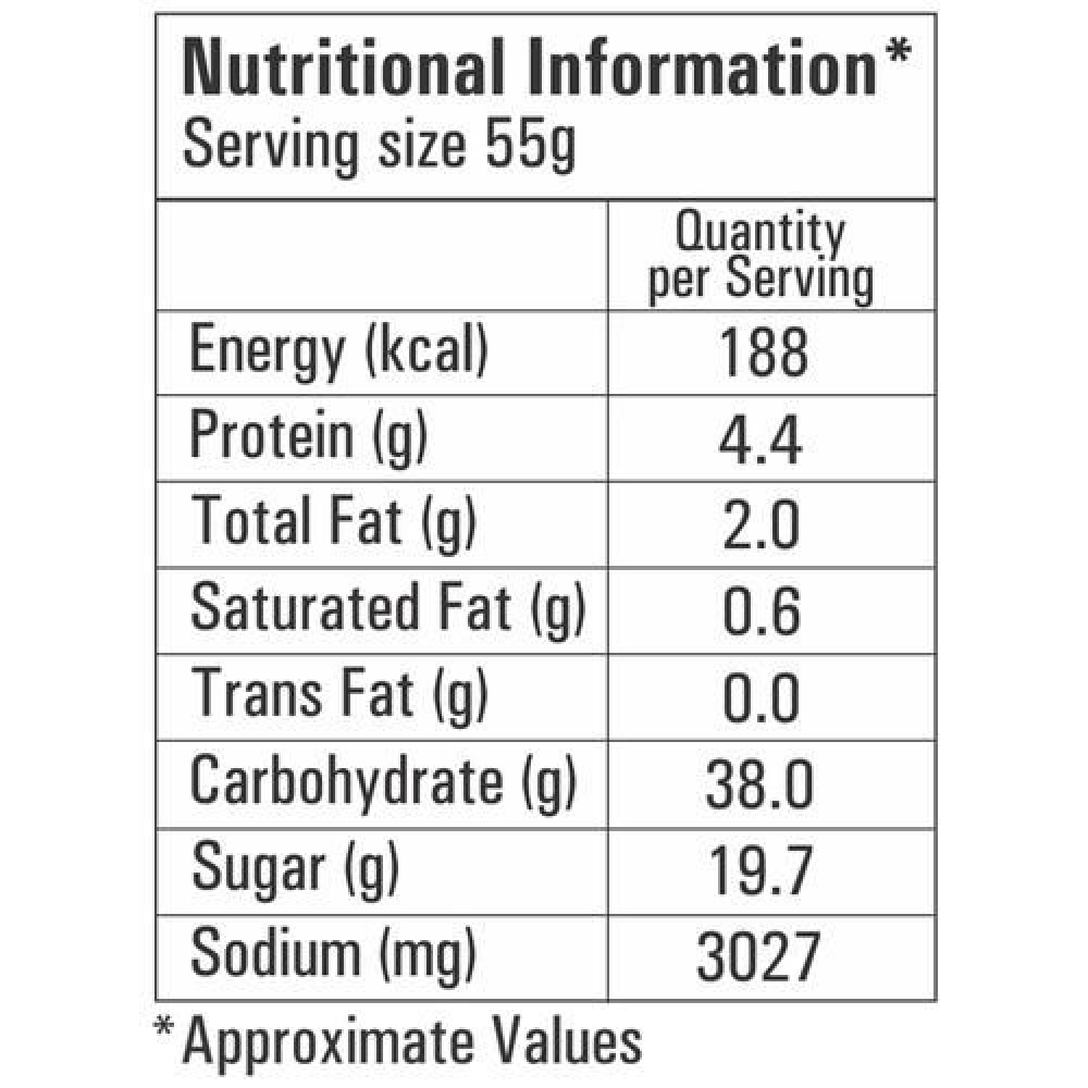 Corn Starch, Dehydrated Vegetables 18% (Carrot, Sweet Corn, Green Peas, Cabbage, Broccoli), Dried Glucose Syrup, Skimmed Milk Powder, Salt, Sugar, Disodium 5’- Ribonucleotides (Flavour Enhancer, E635), Xanthan Gum (Thickener, E415), Onion Powder, Soy Sauce Powder (Soybean, Wheat, Salt), Pepper Powder, Citric Acid (Acidity Regulator, E330), Sunflower Oil, Silicon Dioxide (Anticaking Agent, E551), Turmeric. Contains Added Flavours (Natural And Nature-Identical Flavouring Substances)