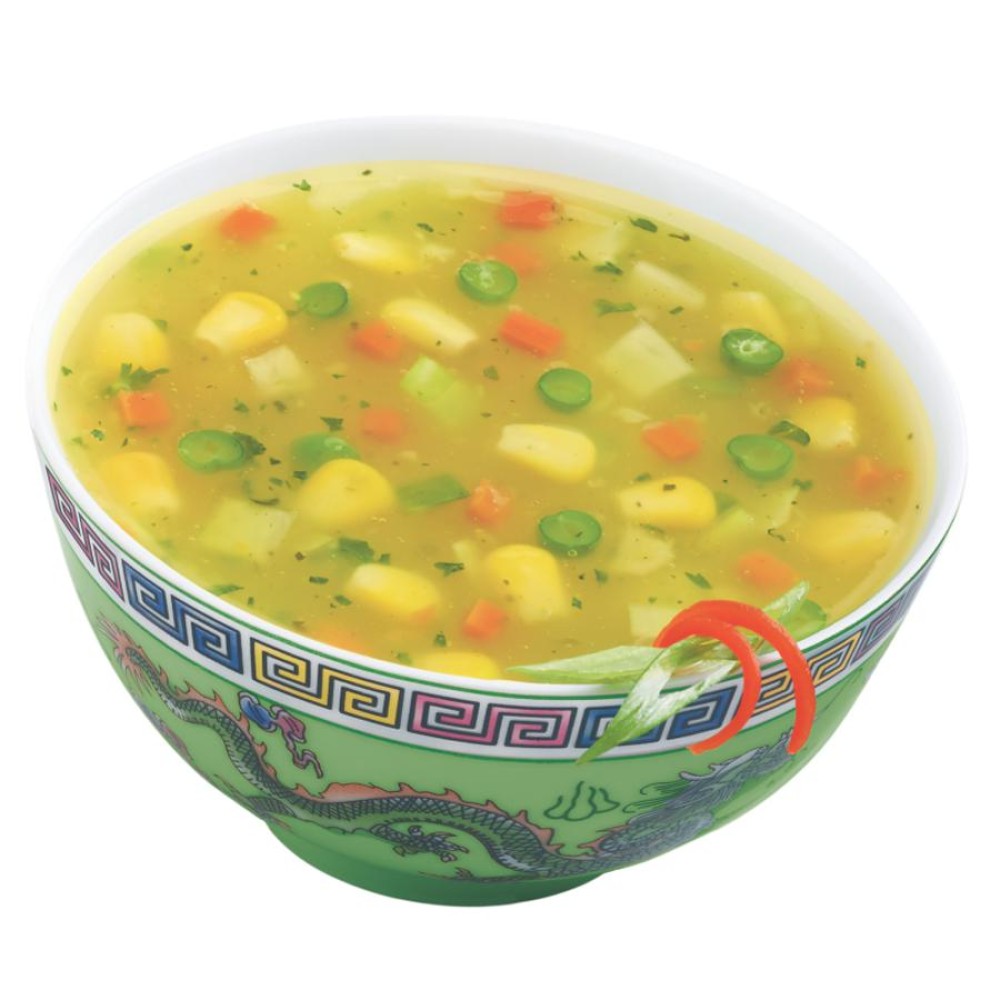 Potato Starch, Sugar, Dried Glucose Syrup, Salt, Dehydrated Vegetables 9% (Sweet Corn (5%), Carrot, Parsley), Flavour Enhancer (E635), Spices 1.5% (Chilli Powder, Pepper Powder, Turmeric), Acidity Regulator (E330), Soy Sauce Powder (Soybean, Wheat, Salt), Onion Powder, Sunflower Oil, Yeast Extract, Thickener (E415), Garlic Powder, Anticaking Agent (E551). Contains Added Flavour (Natural And Artificial