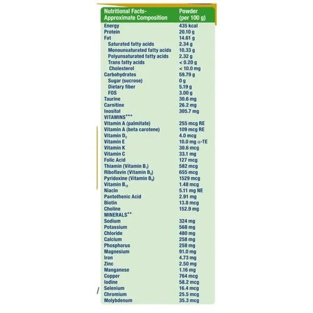 Maltodextrin, Calcium Caseinate, Edible Vegetable Oils (High Oleic Sunflower Oil, Soy Oil), Fructose, Cocoa Powder, Fructooligosaccharide (Fos), Soy Polysaccharide, M-Inositol Vitamins, Antioxidants (Soy Lecithin, Mixed Tocopherols) Taurine, L-Carnitine, Sucralose, Contains Added Vanilla Flavour.