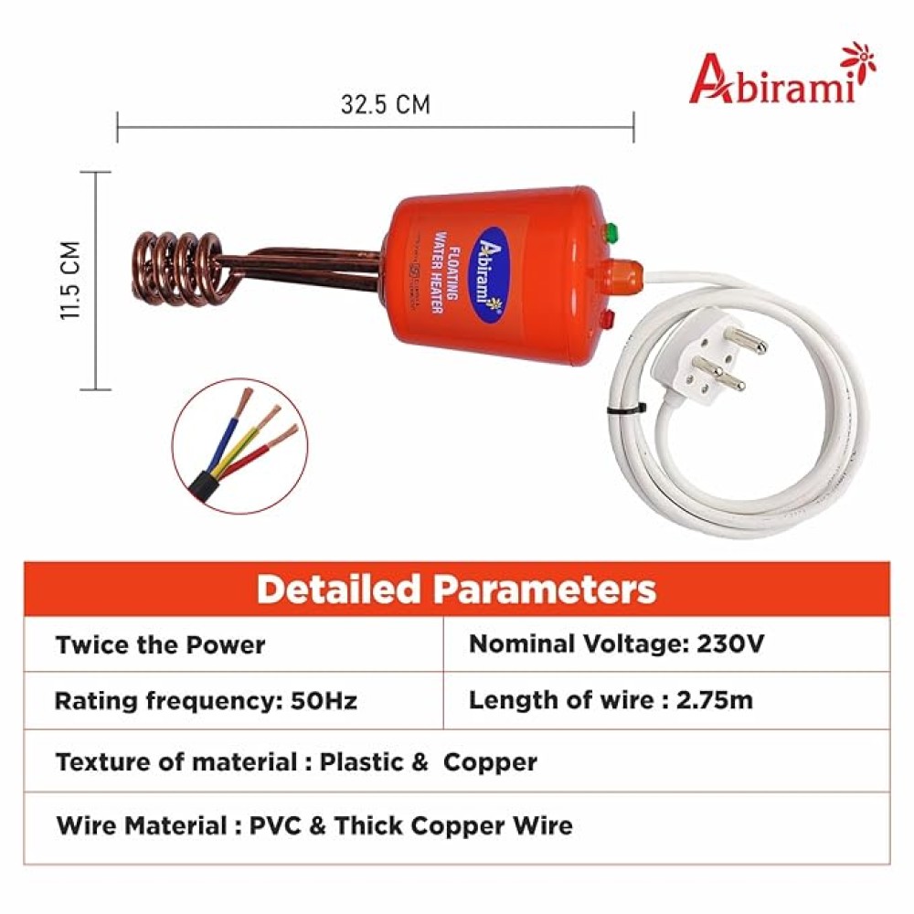 Abirami Floating Water Heater 2000W BIG 100% Copper Heating Tube Portable Shockproof Auto cut-off