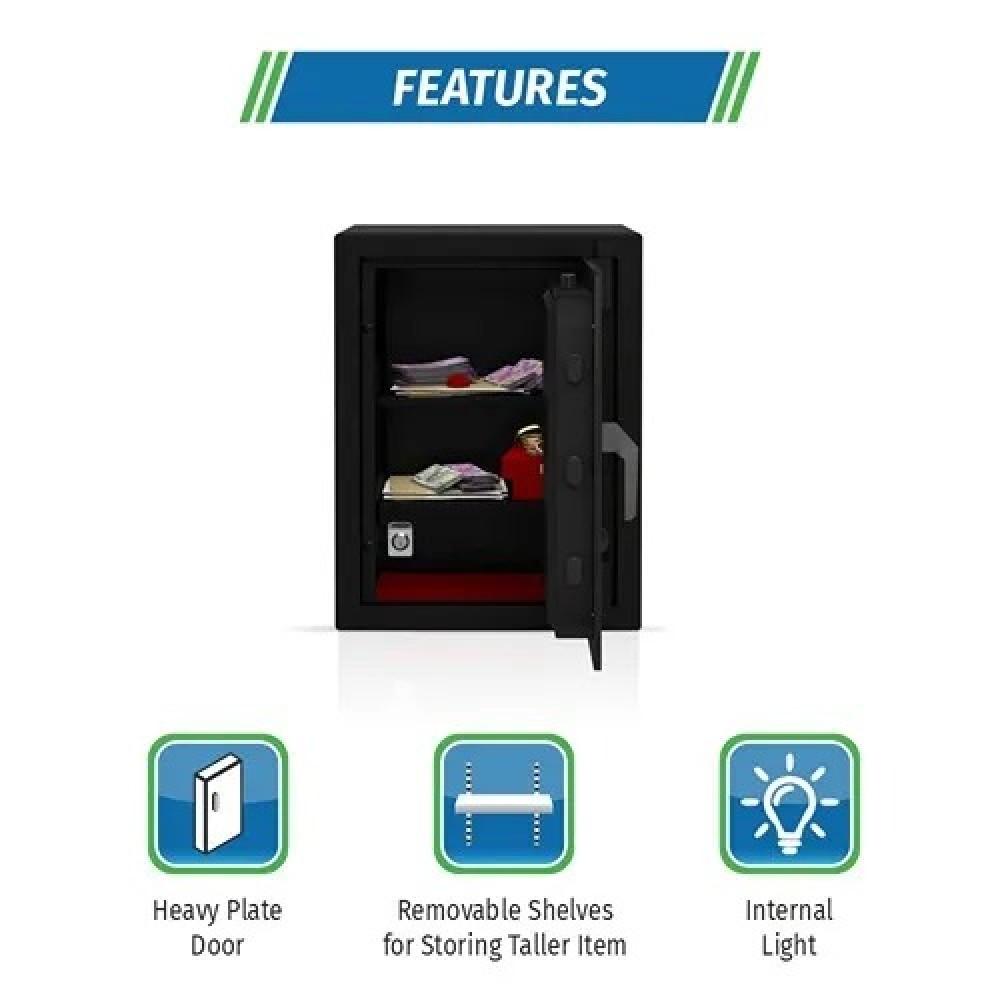 | Features | Twin Solid Steel Shooting Bolts, Heavy Plate Door, Two keys to open One Lock, Internal Shelf, Stylized and convenient new handle |