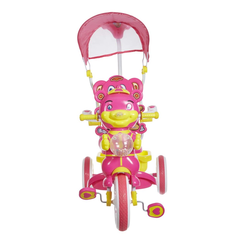 Stylishly designed tricycle with canopy and a push handle