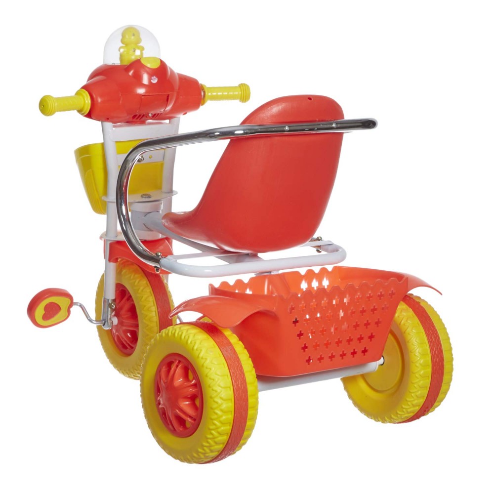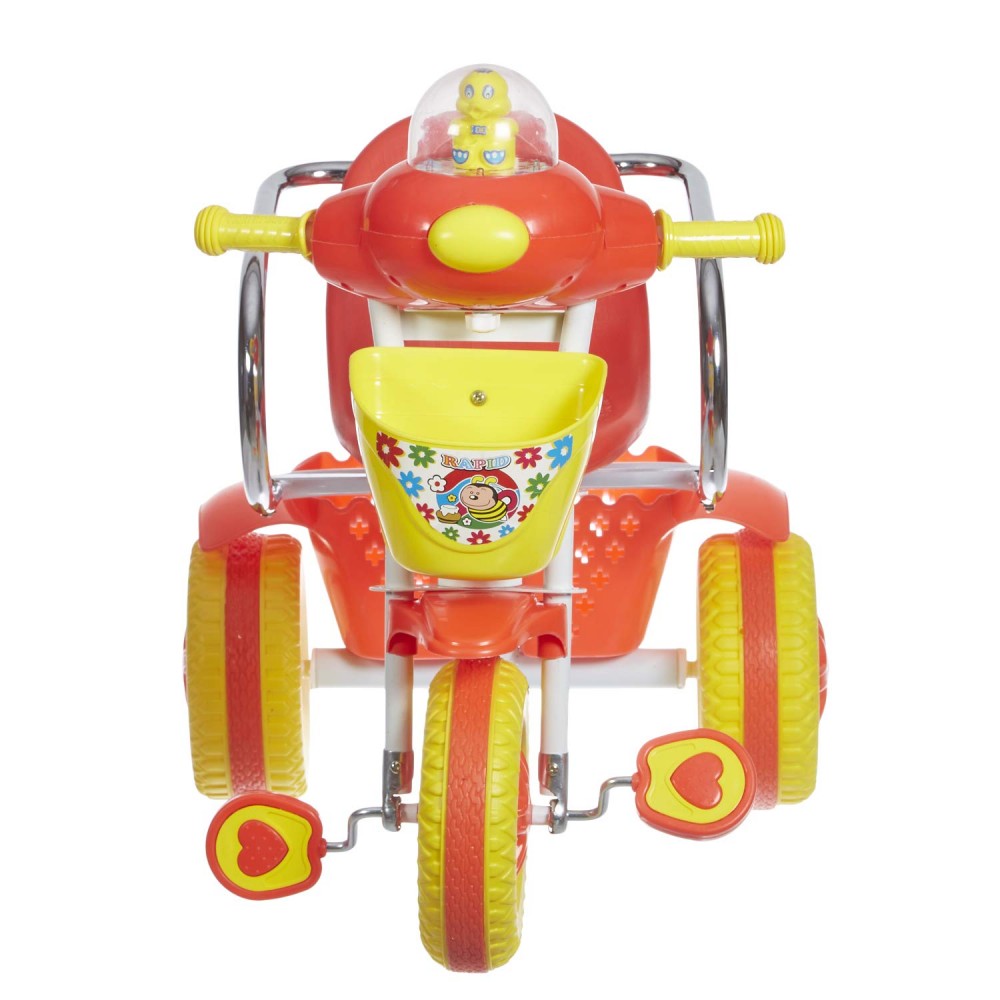 Funride’s Tricycle is designed to provide safe and comfortable cycling. It has attractive design with storage baskets both at the front and at the rear to keep the toys and other essentials like bottle, sipper, handkerchief etc., Designer paddle and wheels for smooth mobility., Comes with LED Lights and music buttons for nursery rhymes (Batteries Included)., Seat with high back rest to support child’s tender back., All parts are made using high precision machines, equipped with durable tires and easy-grip rubber handlebars., Smooth & Controlled Ride: Jumbo wheels make it easy to man oeuvre even on rough and uneven roads.