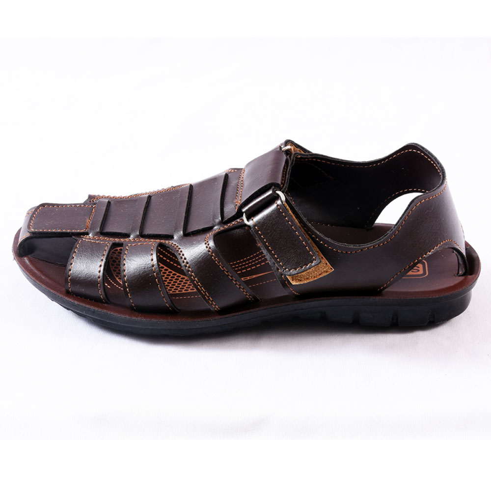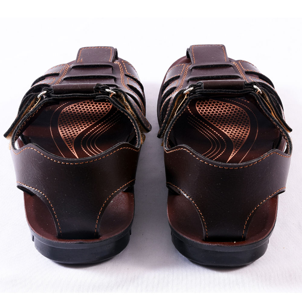 Make an impression wherever you go with the modern men's closed toe rich dark brown ( Brownish Black) PU leather Sandals, from SMD Footwear. This modern men's sandals goes well with dhoti, formal pants, casual jeans and traditional Indian wear. A rich valuable addition to your footwear collection and beautifully fit for all occasions and wear with high confidence.