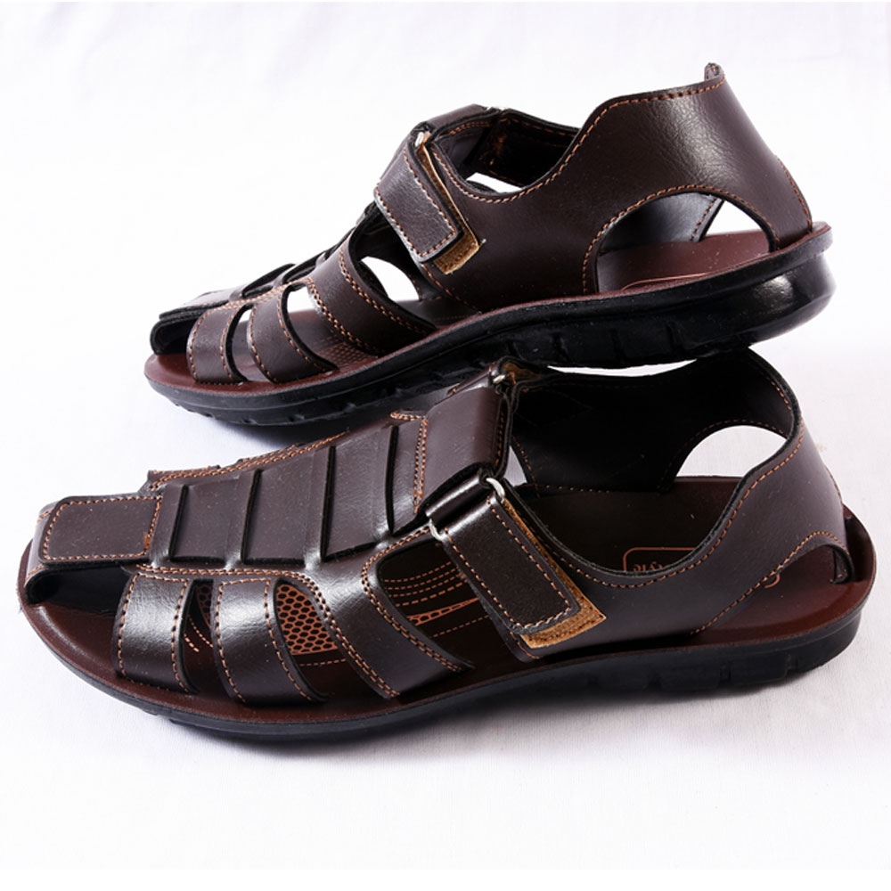 Men's Closed Toe Rich PU Leather Dark Brown Sandals