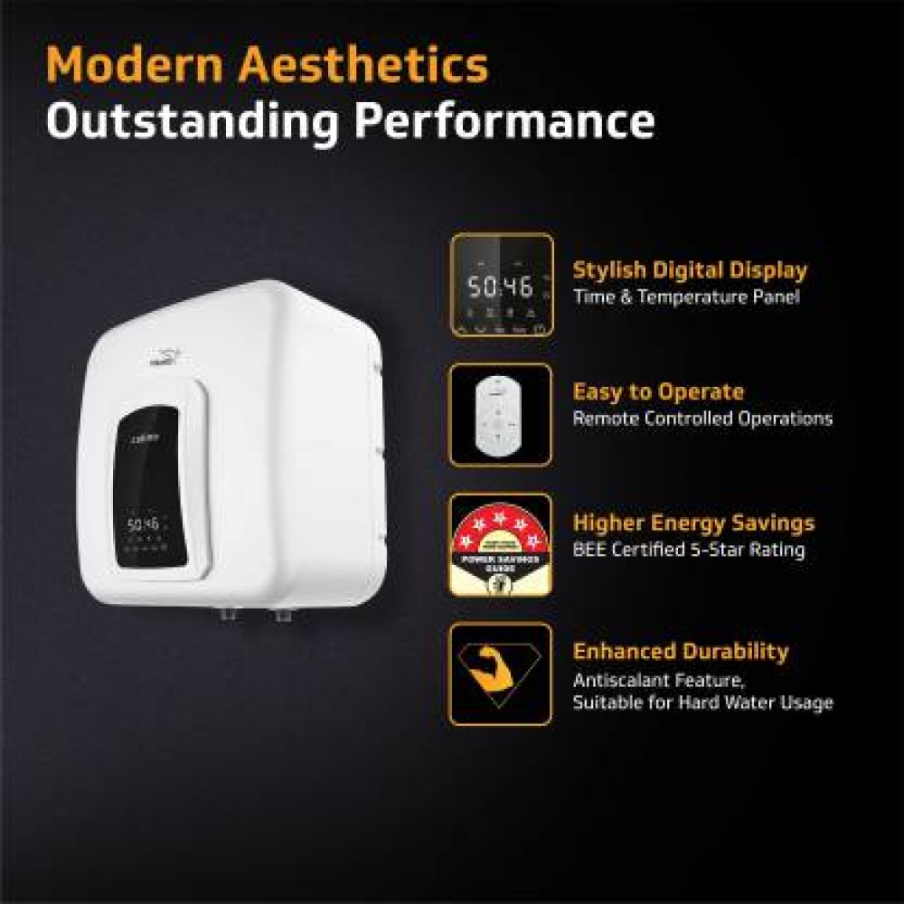 Designed to give your bathroom a classy distinctive touch, Calino DG sports a stylish digital display and offers a customized water heating experience with higher energy savings, long-lasting performance, and superior safety. Available in two capacity variants of 15L and 25L, this digital water heater comes with 4 different modes of operation to suit your different heating requirements and can be easily controlled using a remote or a soft-button control panel.